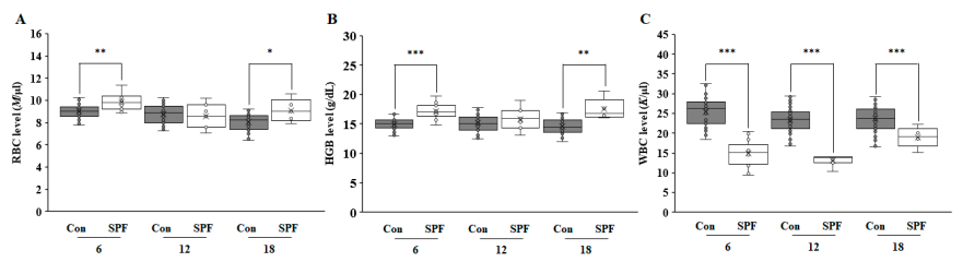 연구진은 18개월에 걸쳐 두 환경에서 자란 돼지의 체중, 키(체장) 등 기초적인 생육 정보와 혈액 내 적혈구, 백혈구, 헤모글로빈 등의 혈액 성질과 상태를 정밀 측정했다.